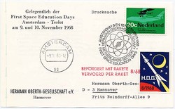 Bundesrepublik 9.6.1966 HOG Postraketen Versuchsstart anläßlich des 3. Raumfahrt-Symposiums in Oldenzaal (Niederlande). Ein kompletter Satz bestehend aus je einer Postkarte der beiden Versuchsreihen 4/67 und 5/67, sowie einem ungestempelten 4er Vignettenblock.Fixed Price